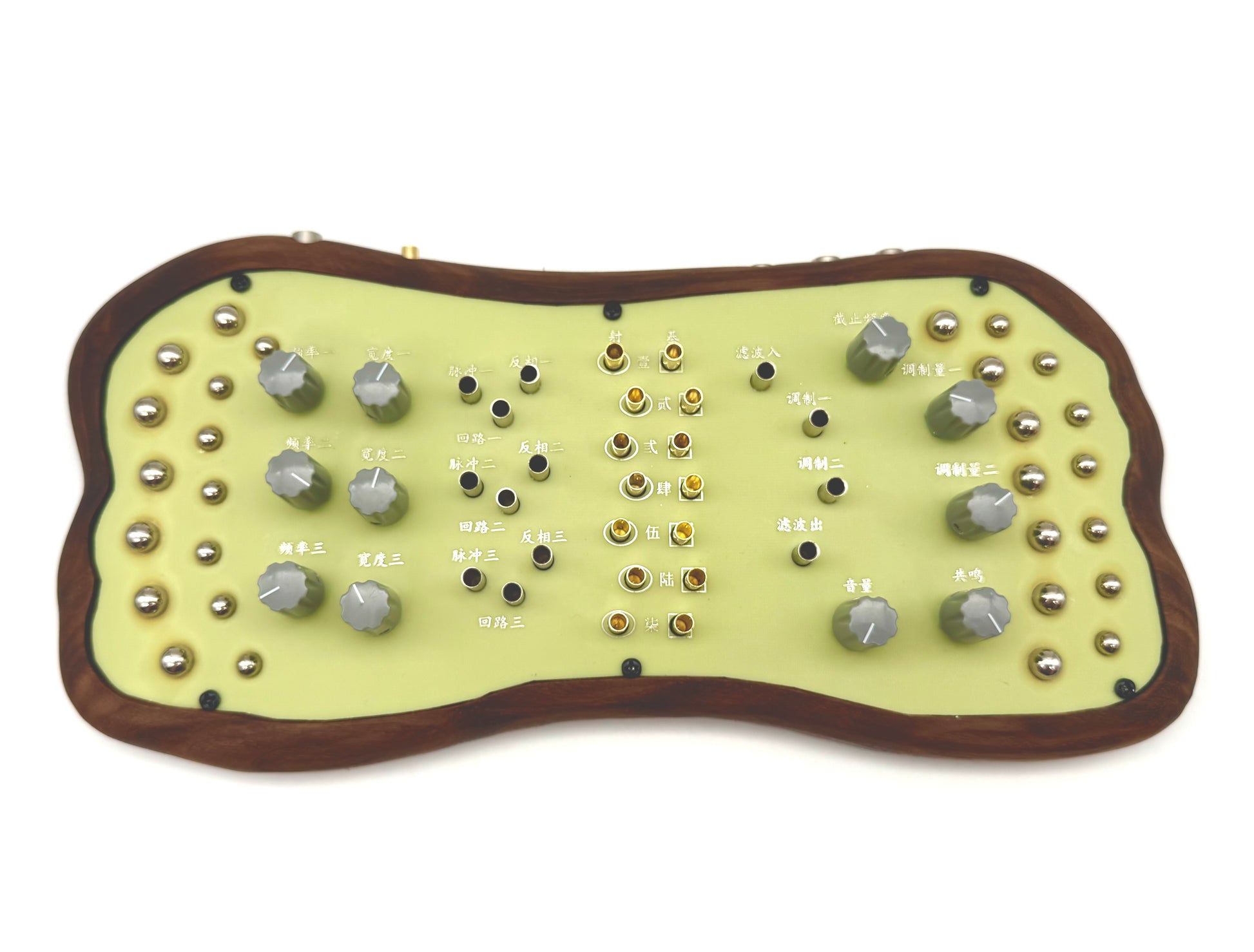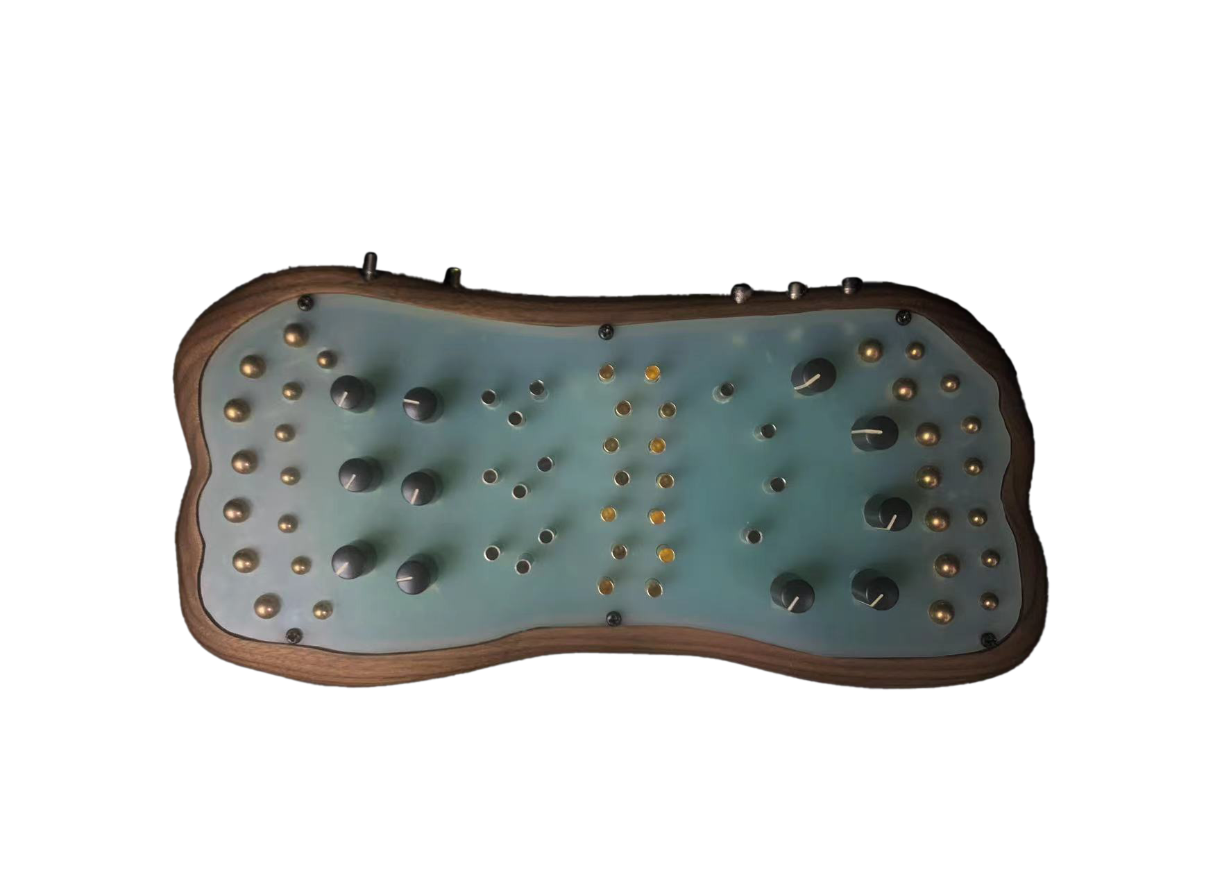 At the heart of the Seofon is a noise generating circuit consisting of seven groups of nodes in the centre, with direct outputs as noise, which are self-wired to form self-oscillations, or can be interfered with by inputting signals to the nodes to generate fixed frequency rhythms.