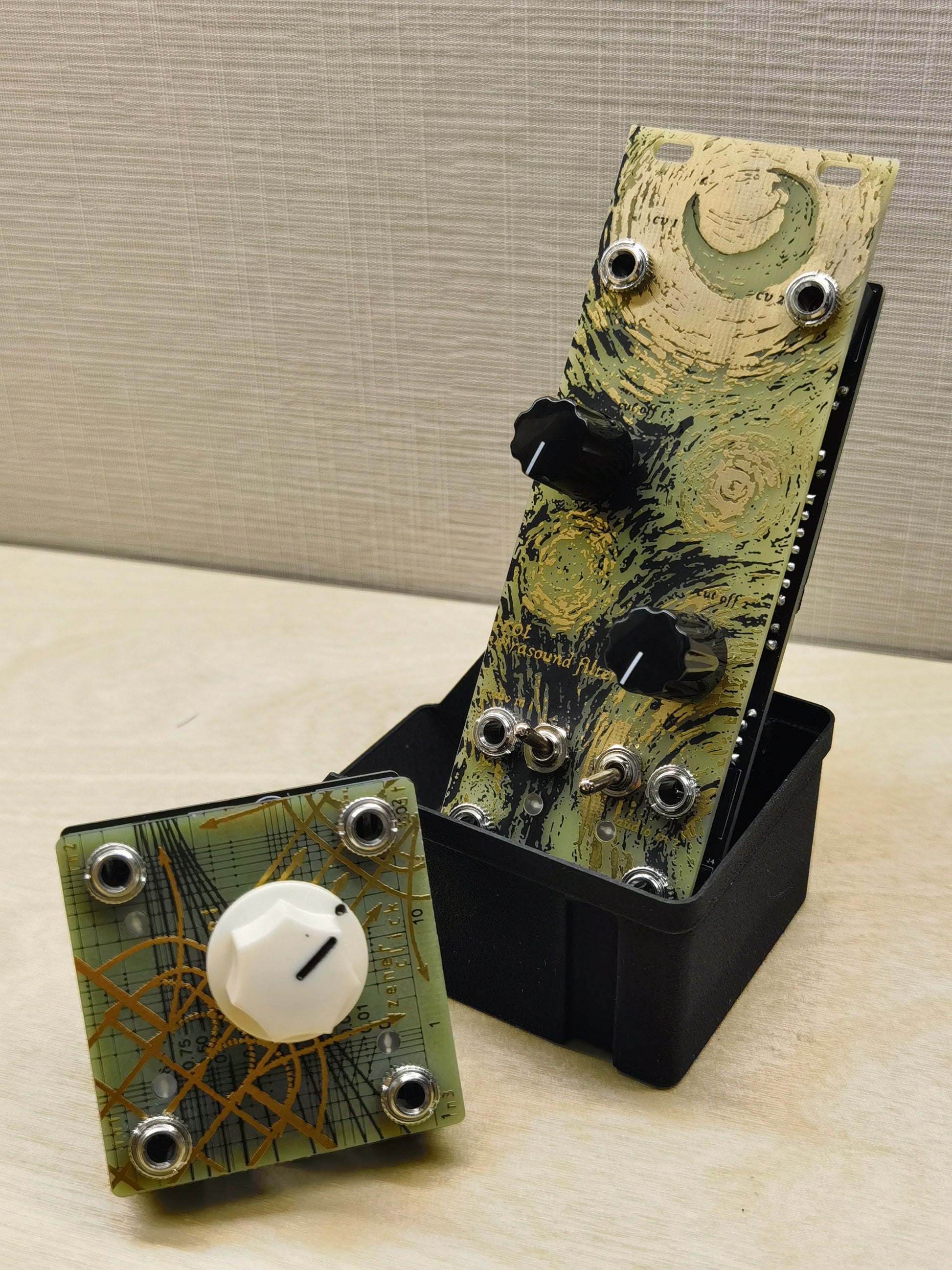 It consists of two sets of filters, left and right, and two sets of cv and knobs control the cutoff value of filter 1 and filter 2 respectively. But the two cutoff will affect each other, and adjusting the parameters of filter 1 will also affect filter 2, especially in the case of self-excitation.